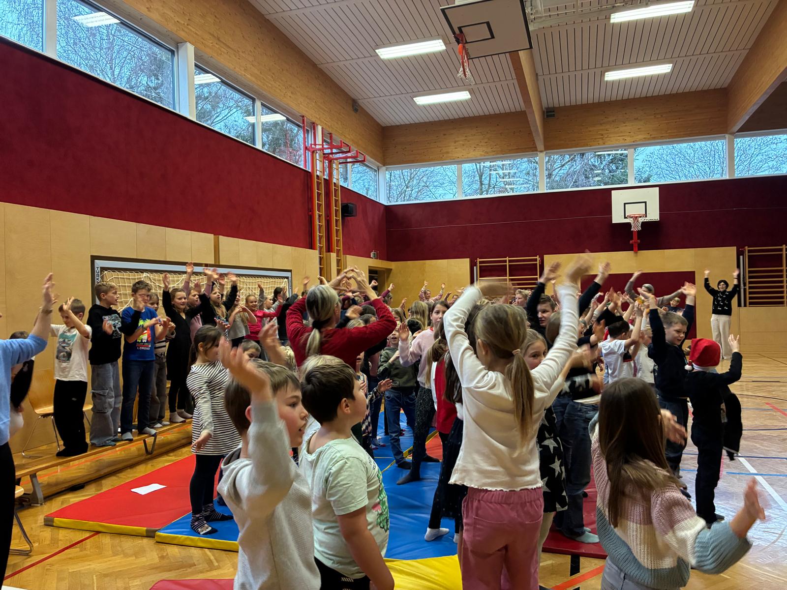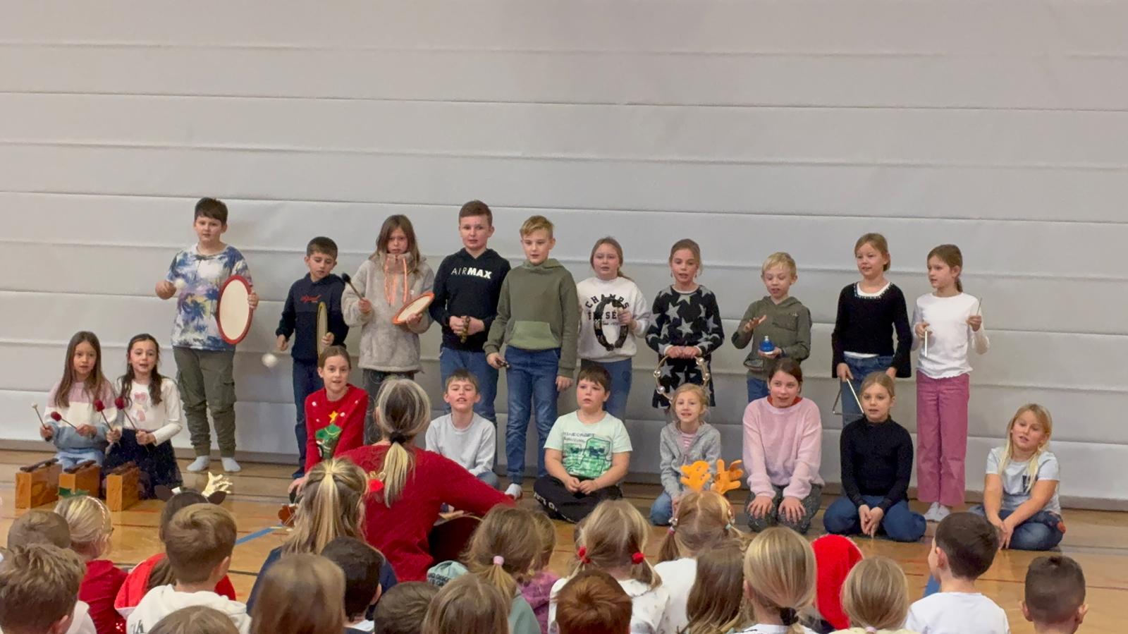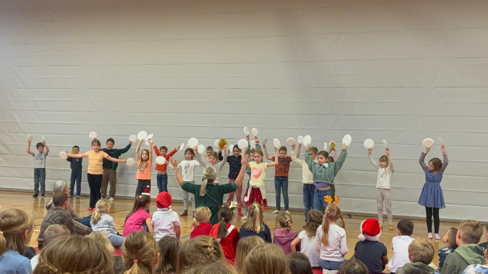 Fröhliche Weihnachten wünschen sich die Kinder im Rahmen unserer weihnachtlichen Schulversammlung!