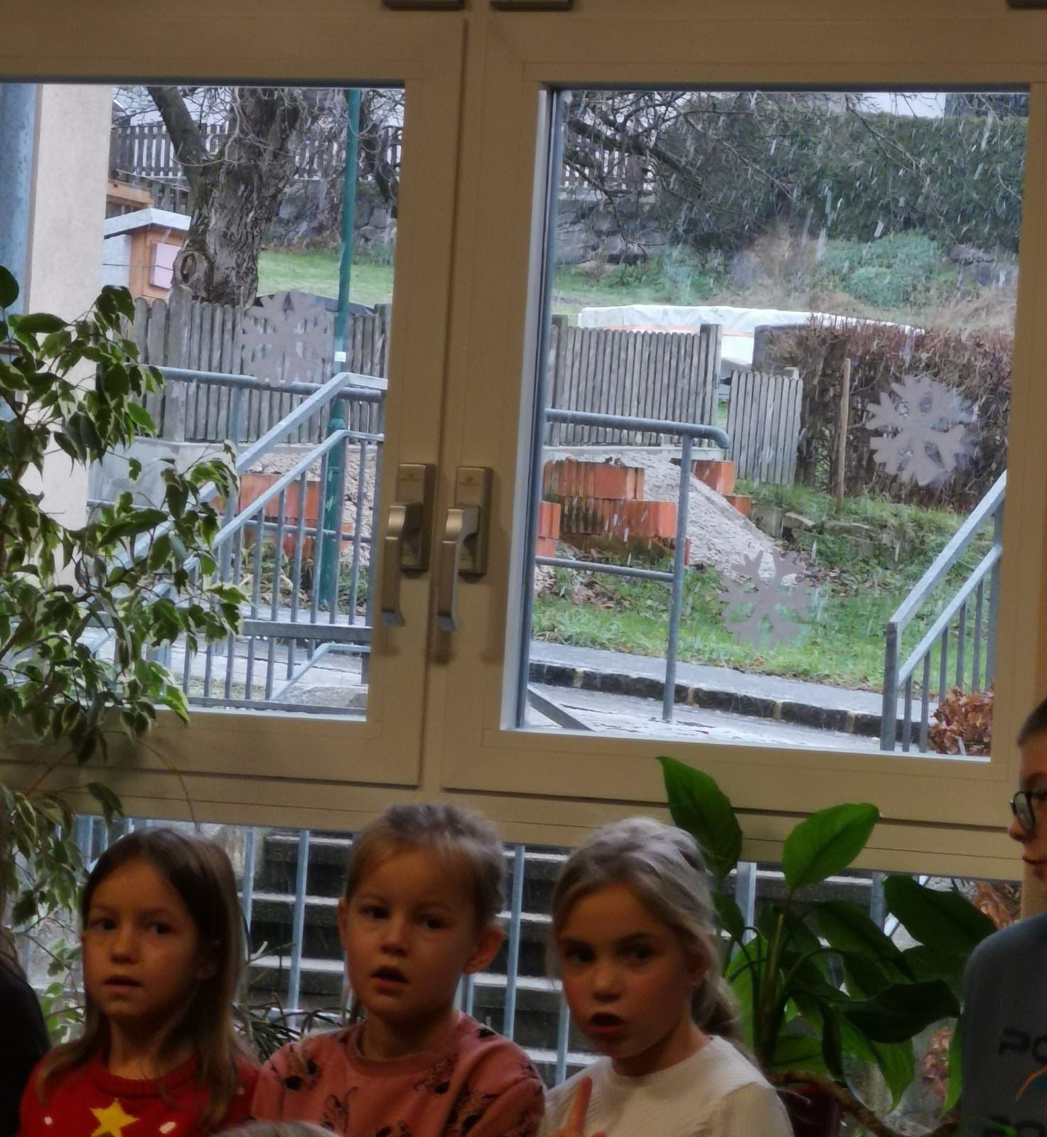 draußen plötzlich zu schneien begann! Die Kinder wurden mit einer Kleinigkeit vom Nikolaus beschenkt und freuten sich sehr!