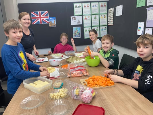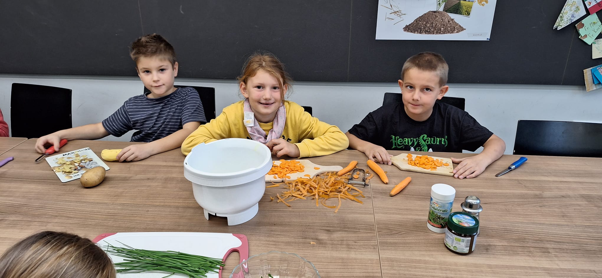 Gemeinsam wurde eine Gemüsesuppe gekocht und ein Apfelstrudel gebacken. Es machte großen Spaß und schmeckte einfach köstlich!