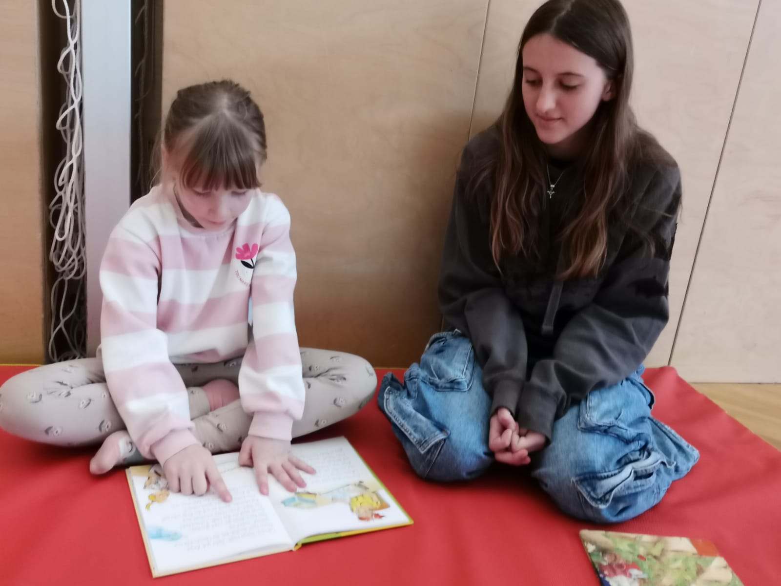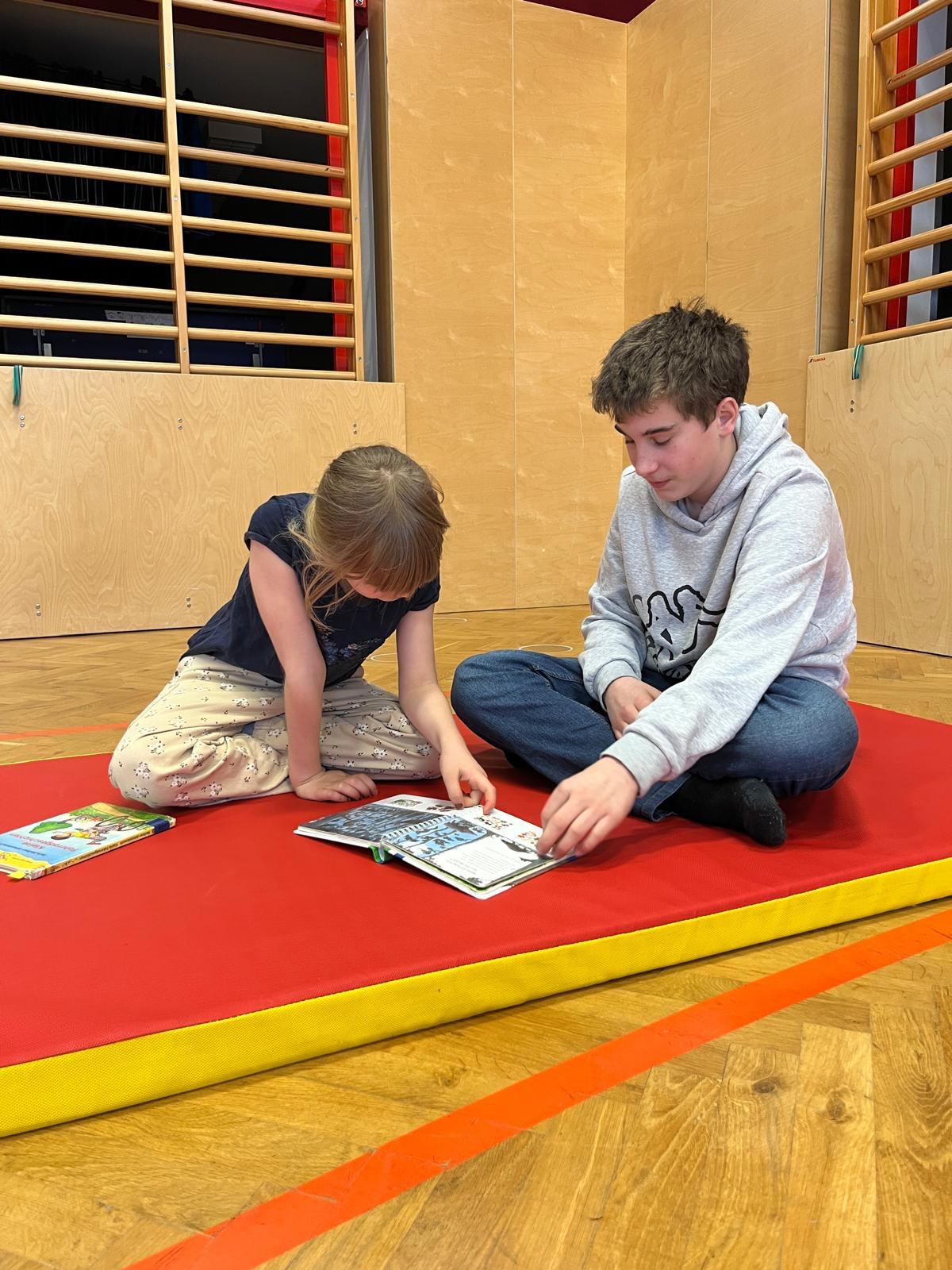 Zum Österreichischen Vorlesetag trafen sich die Kinder der 1. Volksschule mit der 3. Mittelschule und lasen sich gegenseitig aus Büchern vor. Dabei konnten die jungen Leser*innen bereits ihr Lesekönnen zeigen. Das war eine sehr feine Kooperation zwischen den beiden Klassen!