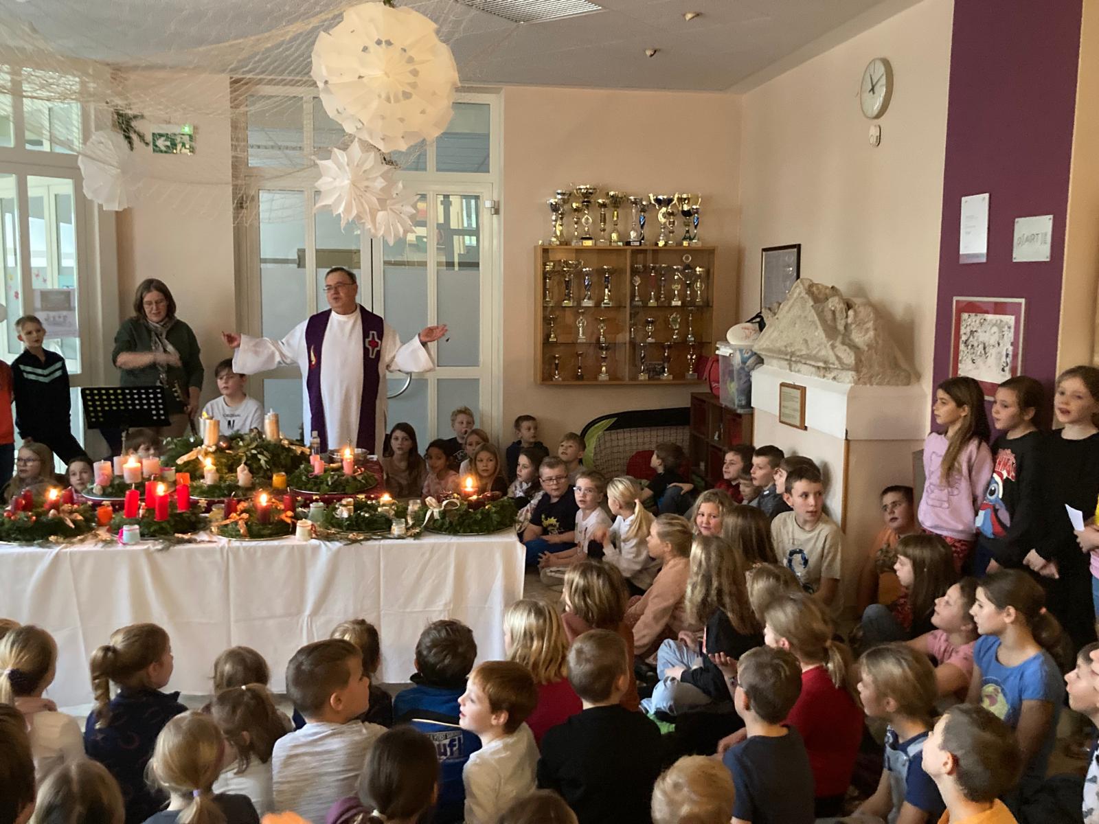 Alle Klassen versammelten sich zur alljährlichen Adventkranzweihe in der Aula! Die Segnung der Kränze als auch das gemeinsame Musizieren stimmten uns auf die