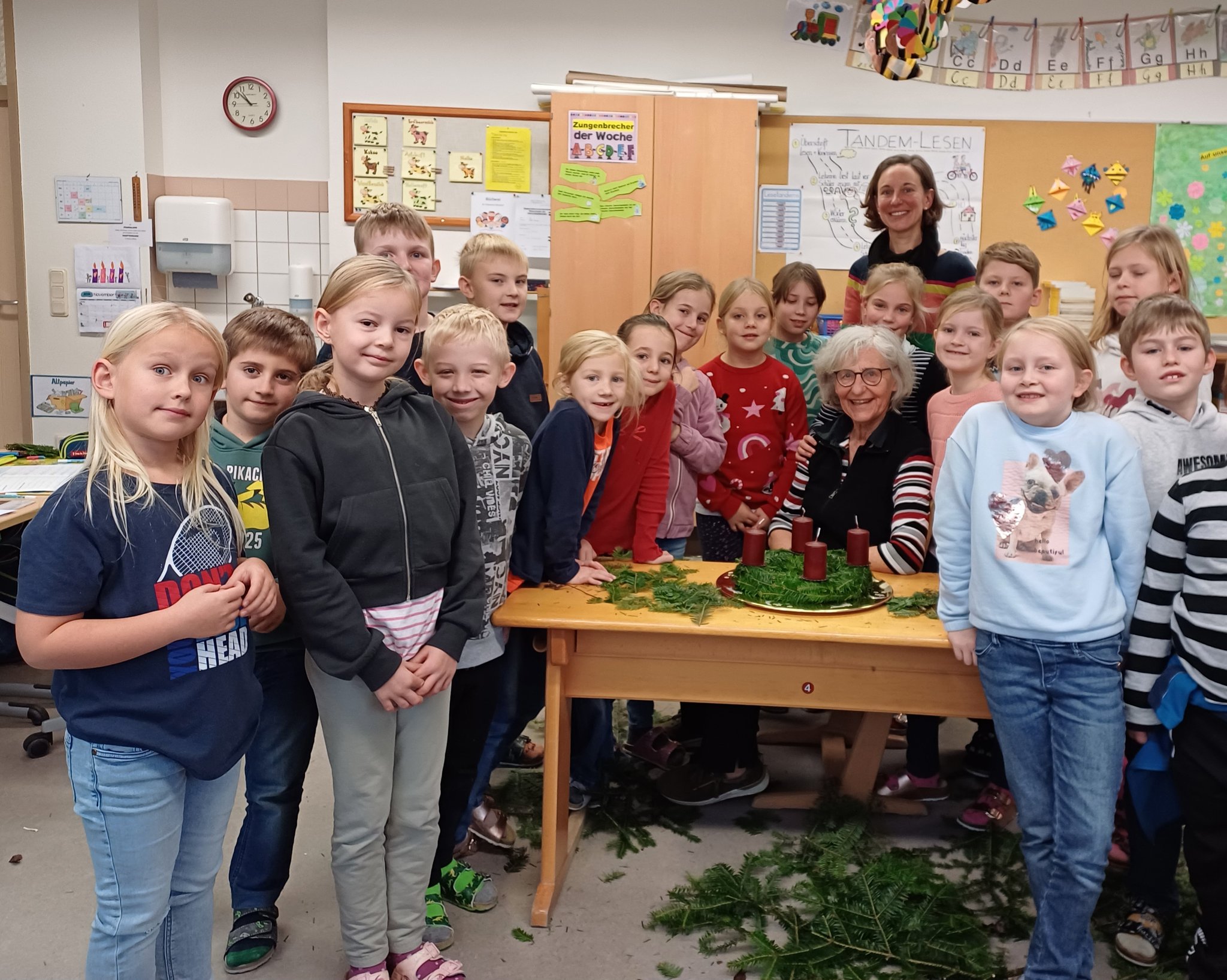 Mit freundlicher Unterstützung von Frau Schagerl Gudrun und Frau Schagerl Katharina banden die Kinder den Adventkranz für die Klasse. DANKE!