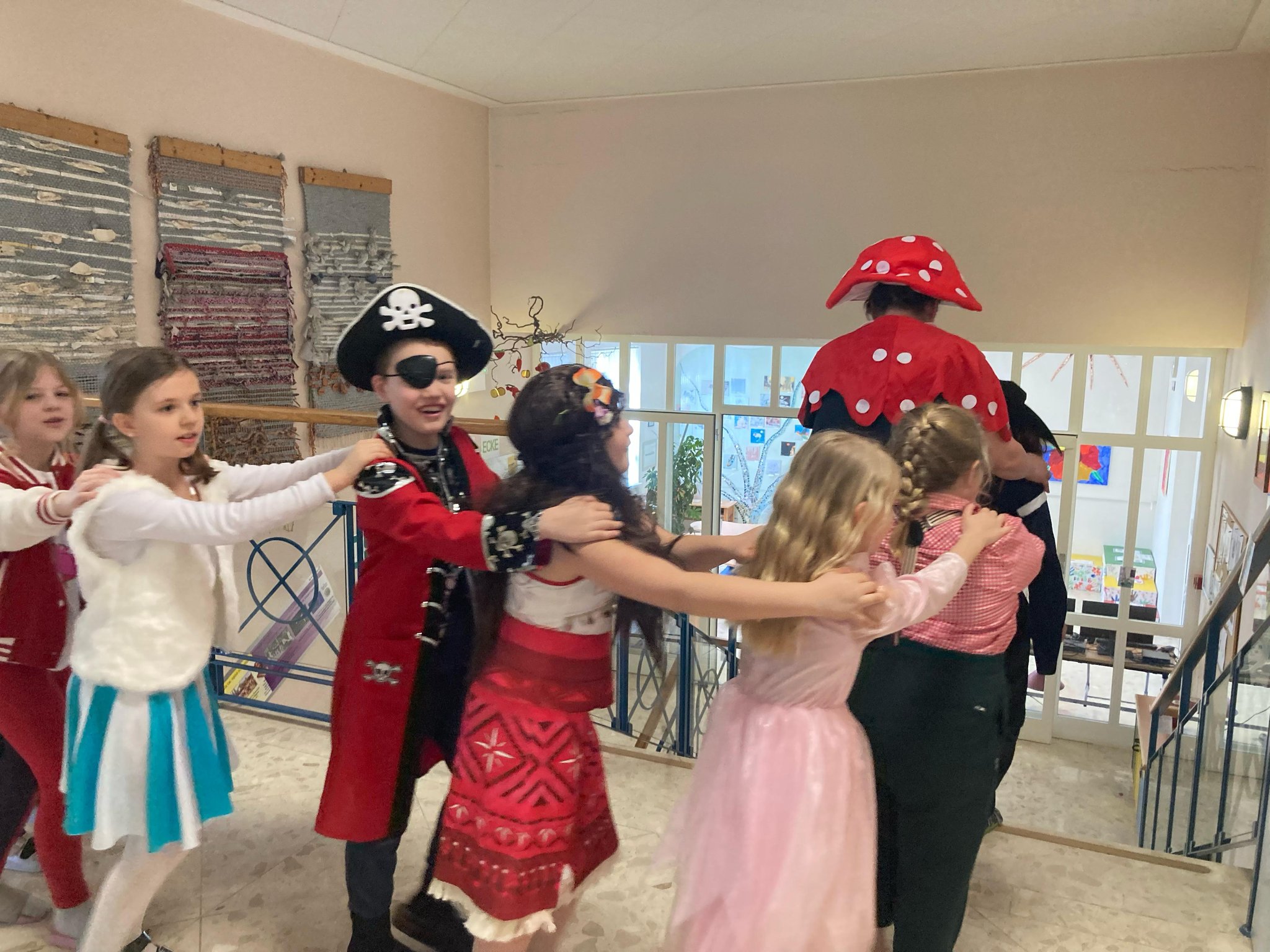 So bunt war der Faschingdienstag in unserer Schule! Auch eine Polonaise durch das ganze Schulgebäude durfte an diesem Tag nicht fehlen! Es wurde viel gelacht, gespielt und
