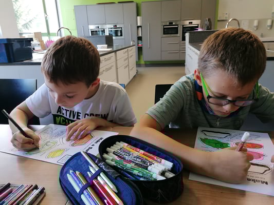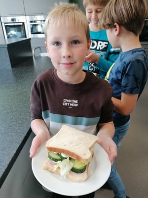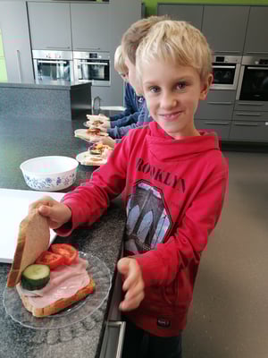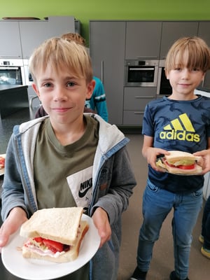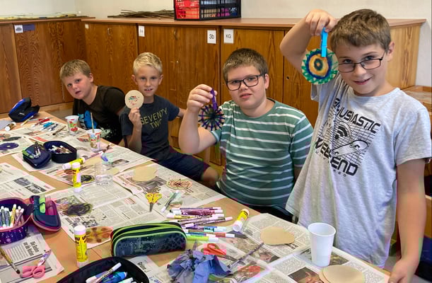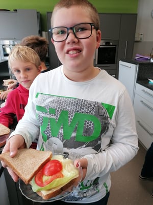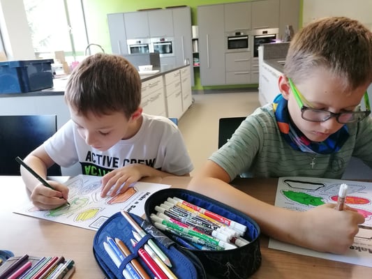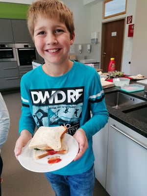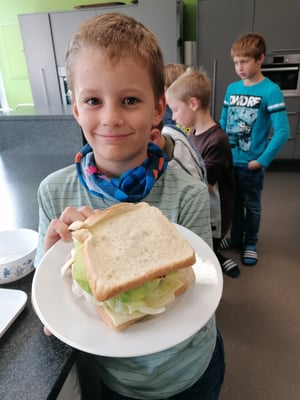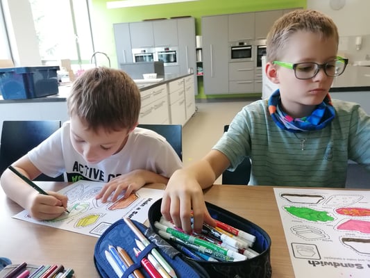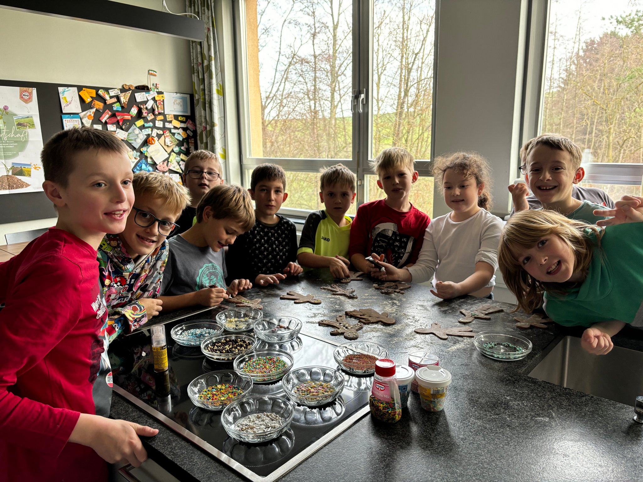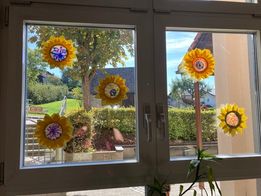 Die erste Bastelei des Wahlpflichtfaches Kreatives Gestalten ist nun fertig. Die jeweiligen Kinder von den 3. und 4. Klassen haben eine Sonnenblume mit buntem Kaffeefilterkreis gestaltet.