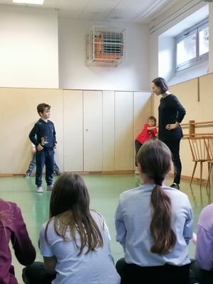 Am 26. April bekamen die Kinder vom Wahlpflichtfach „Darstellendes Spiel“ Besuch von Frau Brigitte Zöchbauer. Gemeinsam wurden lustige Spiele mit theaterpädagogischen Schwerpunkt gespielt. Dazwischen gab es immer wieder brauchbare Inputs fürs Theaterspielen. Abschließend wurden Standbilder und kurze Szenen eingeübt! Es war ein toller Workshop – vielen Dank dafür!