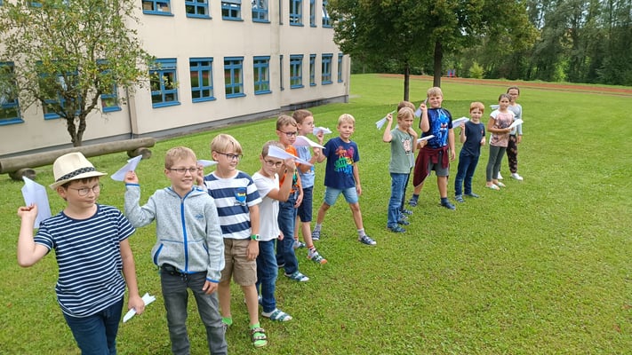 Wir untersuchten die Stabilität von gewöhnlichem Papier. Natürlich bastelten wir auch einen Flieger aus Papier.