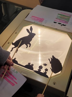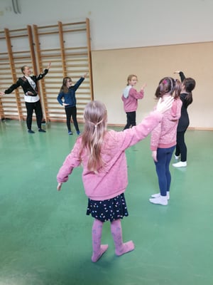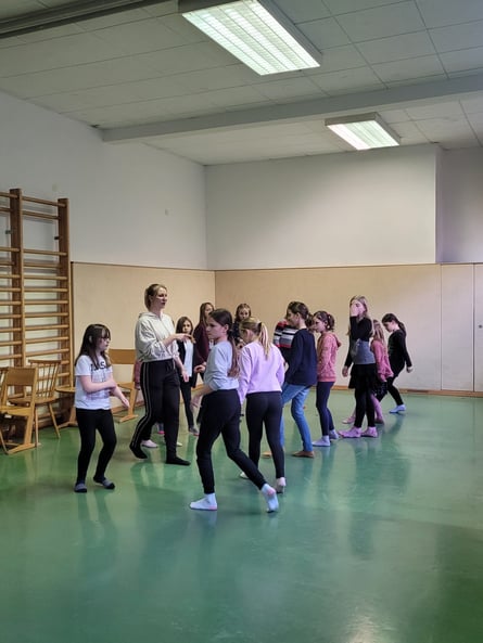 Die Wahlpflichtfächer Tanz und Darstellendes Spiel treffen bei einem Workshop auf zwei Künstlerinnen, die sie zuvor bereits in dem Film „Rotkäppchen und der gar nicht so böse Wolf“ kennengelernt haben. Mit ihnen probierten die Kinder Choreografien und kurze schauspielerische Szenen aus dem Film und nehmen sich viele Tipps und Tricks von den beiden Profis mit.